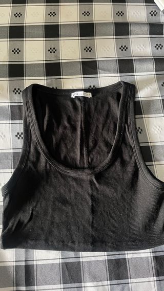 Top sem mangas da Zara, com um design canelado e confortável. - Tecido canelado. - Decote arredondado.