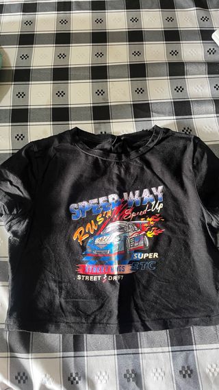 T-shirt preta com estampa gráfica de carro de corrida. - Estampa Speed Way Rush Speed Up. - Detalhes em chamas e texto Street Kings. - Manga curta.