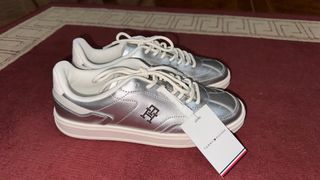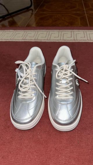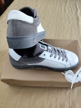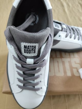 Sapatilhas da marca Match Boots, Novas, nunca usada e ainda na caixa original. - Combinação de cores cinza e branco. - Tamanho 36. - Pele - cordões brancos adicionais