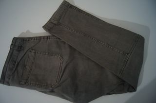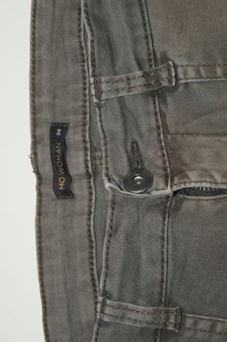Calças de ganga em tom verde azeitona, perfeitas para o dia a dia. - Corte moderno. - Detalhes de costura reforçada. - Bolso traseiro. - Cós com passadeiras para cinto.