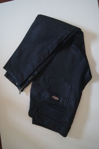 Calças da Bus Urban Wear em azul escuro. - Fecho de correr na barra. - Detalhe de bolso com emblema. - Costuras reforçadas.