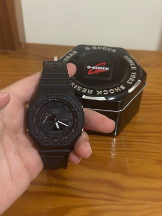 Relógio Casio G-Shock modelo GA2100. - Design moderno e robusto. - Resistente à água 20 BAR. - Pulseira em resina preta.