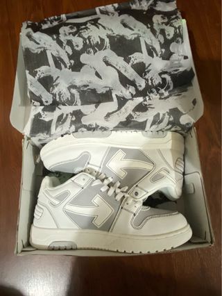 Tênis da Off-White em couro. - Design moderno com detalhes em cinza e branco. - Cadarços brancos. - Sola robusta.