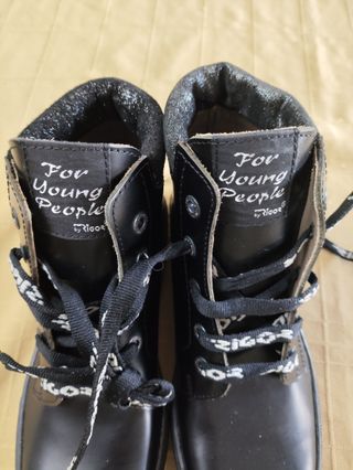 Botas pretas da marca Rigor, em tamanho 35, nunca usadas, completamente NOVAS - Design moderno e versátil. - Fecho com atacadores. - Detalhe de glitter na parte superior. - Pele