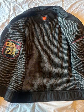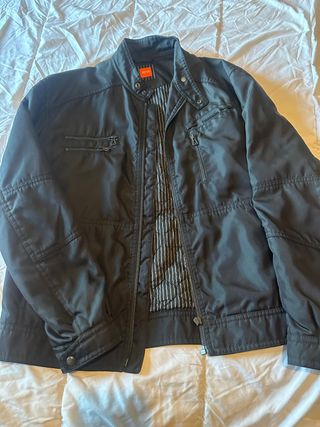 Casaco da marca BOSS em preto, em excelente estado. - Design moderno com fecho à frente. - Bolsos com fecho na zona frontal. - Gola alta com fecho. - Forro interior com padrão às riscas.
