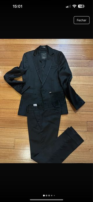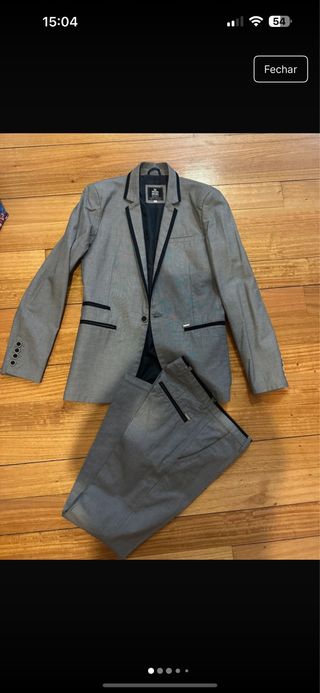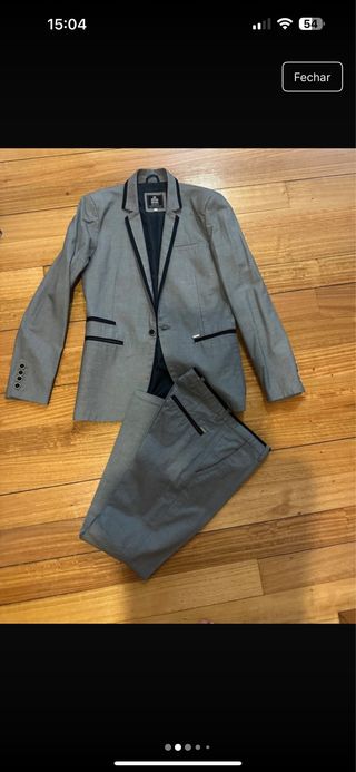 Conjunto de fato de gala. - Blazer com detalhes em Azul. - Calças com fecho e detalhes em preto. -laço a condizer