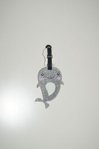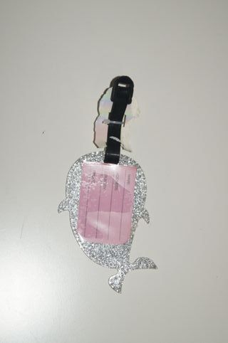 Este acessório em forma de narval com glitter é perfeito para identificar sua mala de viagem. - Design de narval com glitter. - Detalhes em rosa e lilás.