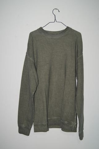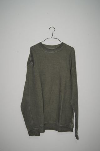 Camisola de manga comprida em tom verde. - Gola redonda. - Punhos e bainha canelados. - Costuras laterais visíveis.