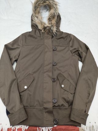 Casaco com capuz e detalhe em pelo, ideal para dias mais frios. - Fecho e botões. - Bolsos frontais com botões. - Punhos e barra canelados. - Todo forrado em pelo no interior - Tecido gabardine e impermeável - Pelo do capuz muito bom - Ideal para os dia de muito frio e chuva - Cor : Caqui - Castanho Novo