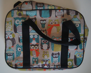 Lancheira prática com uma divertida estampa de corujas em várias cores. - Design com corujas coloridas. - Alças resistentes para transporte.