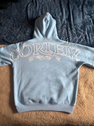 Casaco com capuz da marca Corteiz. - Cor azul. - Design com logo na parte de trás.
