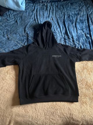 Moletom ESSENTIALS Fear of God na cor preta. - Logo ESSENTIALS Fear of God em relevo. - Capuz. - Manga longa.