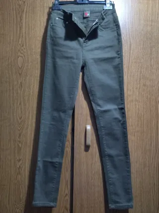 Conjunto de duas calças skinny jeans. - Um par preto - Kiabi - Um par verde - Ptn