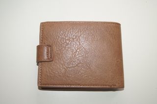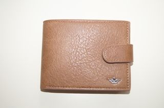 Carteira masculina em pele, nunca usada. Possui um design clássico e elegante. - Cor: Castanho - Detalhes: Prata - Fecho de botão