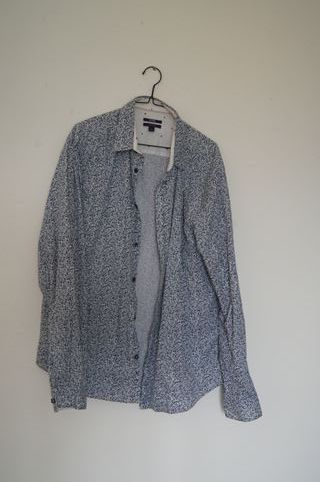 Camisa estampada azul e branca Tam L