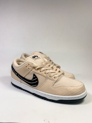 Tênis Nike SB Dunk Low Albino & Preto. - Design exclusivo em tecido. - Detalhes em preto no Swoosh e na sola. - Cadarços na cor bege.