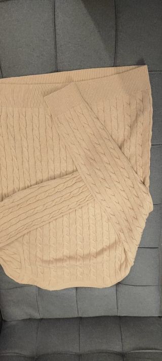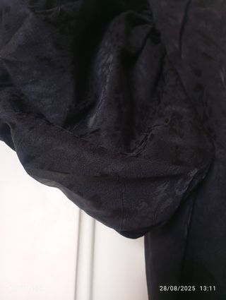 Fato elegante para senhora, perfeito para o inverno. Combina tons de preto e bege com um toque texturizado. - Design moderno e sofisticado. - Detalhes em fio brilhante.