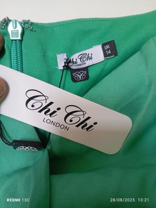 Vestido curto verde da Chi Chi London, ideal para um cocktail. - Modelo ombro a ombro. - Detalhe de nó na cintura. - Tecido fluido e leve. - Perfeito para eventos especiais.