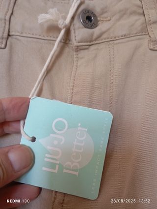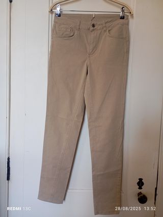Calças Liu.jo em tom bege, de tamanho pequeno. São calças compridas, de corte reto e com um aspeto elegante e casual. - Feitas de um material de algodão resistente. - Possuem bolsos funcionais. - Apresentam-se em excelente estado.