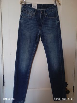 Jeans Pepe Jeans, modelo slim fit, cor azul. Estão em ótimo estado. - Corte ajustado. - Cintura baixa.