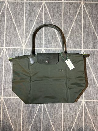 Mala da marca Longchamp em tamanho L, com um tom verde elegante e detalhes em couro. - Cor: Verde/Verde Oliva - Detalhes em couro