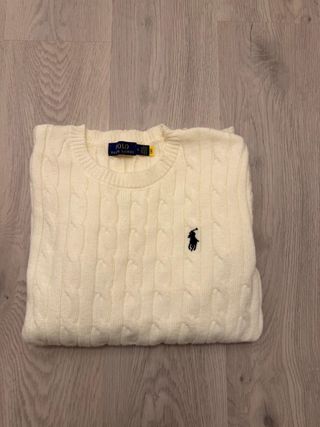 Malha de malha com um design clássico e elegante.🥰 - Padrão de trança intrincado. - Logótipo do cavaleiro bordado no peito. -Envio rápido👌 -Posso tirar mais fotos 🙌🏻