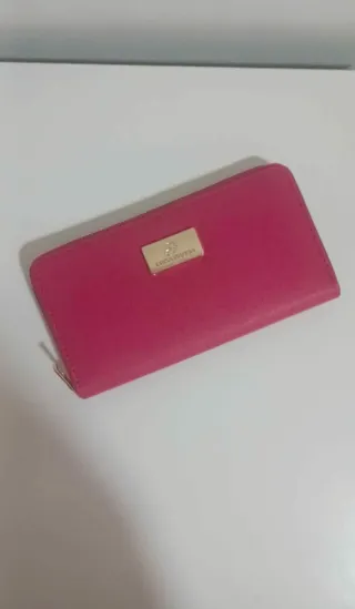 Carteira da marca Luca Barra em tom rosa vibrante com detalhes dourados. - Design elegante e moderno. - Fecho completo em zíper.