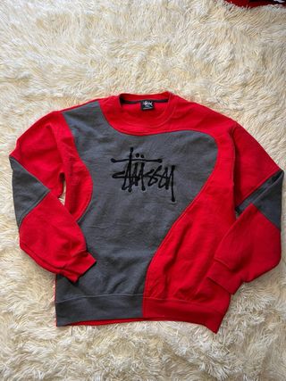 Stüssy Sweatshirt Vintage Crewneck 90s Color: Red/Grey ✈️ Super fast shipping:24/48h 💲Negotiable price 📏Size: L - measures on last pics 📩 Fast reply to any question Note: The sweatshirt is wrinkled because it has been washed 🫧