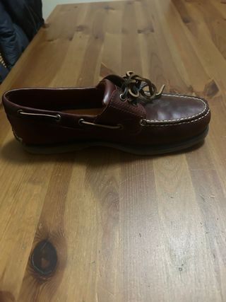 Sapatos de vela Timberland em pele castanha. - Design clássico de sapatos de vela. - Fecho com atacadores. - Sola de borracha.