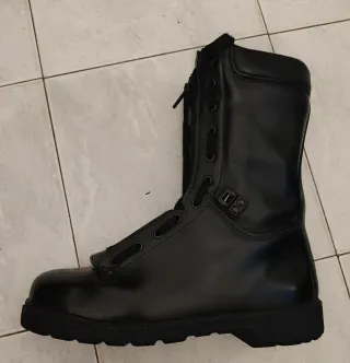 Botas de segurança robustas e confortáveis. Apropriadas para bombeiros. - Certificação S3. - Material exterior em pele preta. - Fecho de correr frontal destacável em pele que pode ser usado em outras botas. O fecho foi lubrificado com óleo especial para poder abrir e fechar sem travar. - Biqueira de compósito. - Palmilha antiperfuração.