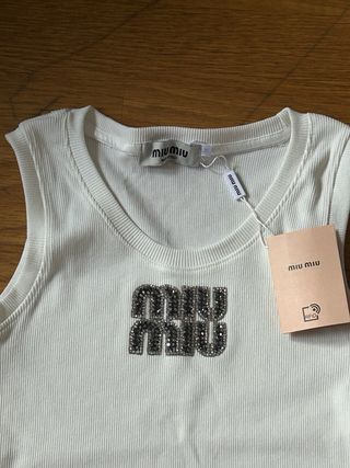Top Miu Miu Branco com Logo Brilhante