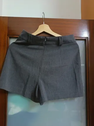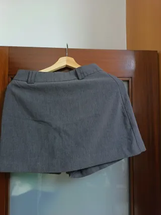 Saia calção em tecido cinzento. - Cintura com passadeiras. - Design moderno.