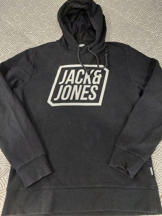 1213 Casaco com capuz da marca Jack & Jones. - Cor preta. - Tamanho M. - Logo frontal em contraste.