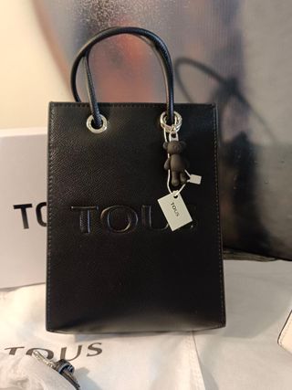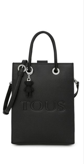 Bolsa preta da marca Tous, com um charmoso chaveiro de urso. - Design elegante e moderno. - Fecho seguro. - Alça confortável para transporte.