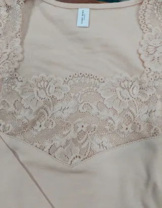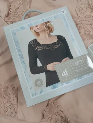 Camisola térmica de manga longa com um elegante detalhe em renda. - Decote quadrado com renda. - Punhos com detalhe em renda. - Tecido macio e confortável.