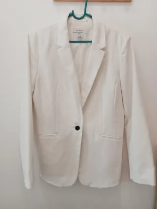 Blazer elegante de cor branca. - Fecho de um botão. - Bolsos falsos frontais com lapela. - Corte clássico. - Forrado. - Serve a S/M. Em muito bom estado,sem sinais de uso.