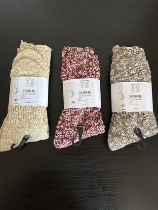 Conjunto de três pares de meias da marca UGG. Design em malha canelada com um toque aconchegante. - Padrão mesclado em tons de bege e multicolor. - Malha canelada texturizada. - Confortáveis e quentes.