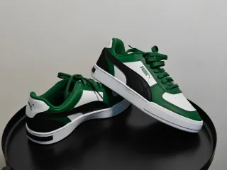 Sapatilhas da marca Puma em verde e branco. - Design moderno. - Cadarços verdes. - Detalhes em preto.