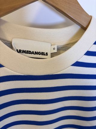 Sweatshirt Armedangels riscas azul e bege. Mulher