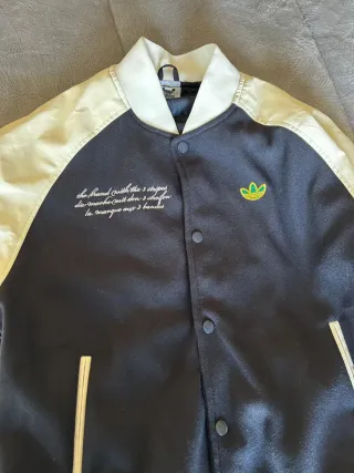 Chaqueta Adidas Originals en excelente estado, como nueva. Diseño clásico con mangas blancas y cuerpo negro. - Logo de Adidas bordado en la espalda. - Cuello y puños elásticos.