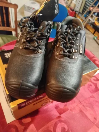 Botas de segurança com biquei de aço. - Cor preta. - Marca PECOL. - Fecho com atacadores.