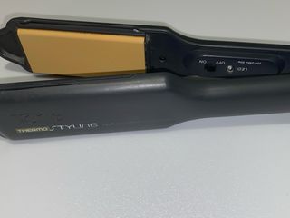 Prancha alisadora de cabelo Profissional da marca Tano, modelo Thermo Styling DG033. Prancha de cabelo com revestimento em turmalina que ajuda a reduzir o frizz e deixar o cabelo mais brilhante. • Função 2 em 1: alisa e faz ondas/cachos, ideal para todos os tipos de cabelo. • Aquecimento rápido e temperatura alta para um resultado profissional em poucos minutos. • Cabo giratório 360º para maior liberdade de movimento durante o uso. • Design leve e ergonómico, perfeito para uso diário em casa ou em salão. Plástico ligeiramente lascado numa das astes. Apenas estético. 100% funcional.