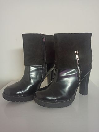 Botim salto alto vinil com fecho Cor preto Tamanho: 38 Altura salto: 10cm Altura plataforma frontal: 2cm Usados uma vez