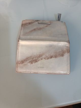 Carteira elegante com um design moderno. - Acabamento em verniz. - Detalhes em tons de castanho que criam um efeito marmorizado. - Fecho de correr.