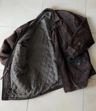 Casaco de camurça para homem, com um design clássico e elegante. - Material: Pele de camurça - Cor: Castanho - Bolsos frontais com botões - Fecho de botões