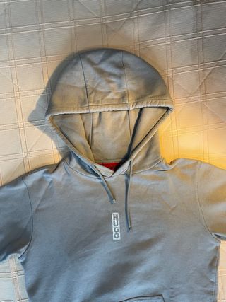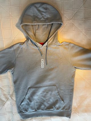 Casaco com capuz da Hugo Boss em tom cinza. Possui um bolso frontal canguru e cordões ajustáveis no capuz. - Logo da marca na frente. - Tecido macio e confortável.
