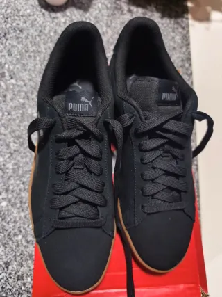 Sapatilhas Puma em camurça preta com sola em borracha castanha. - Design clássico e versátil. - Detalhe do logo Puma na lateral e na língua. - Fecho com atacadores pretos.