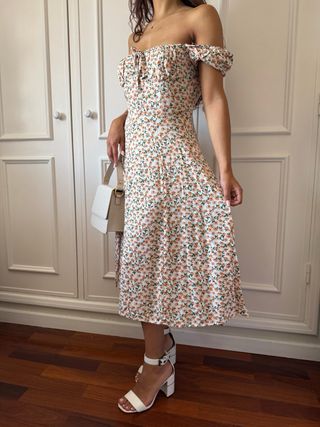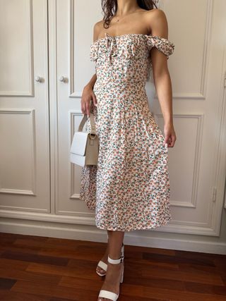 Vestido estampado floral ombro a ombro