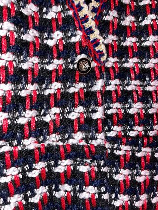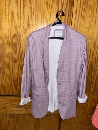 Blazer de xadrez púrpura com cinto. Tamanho S.