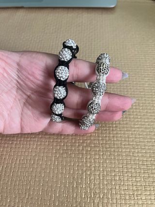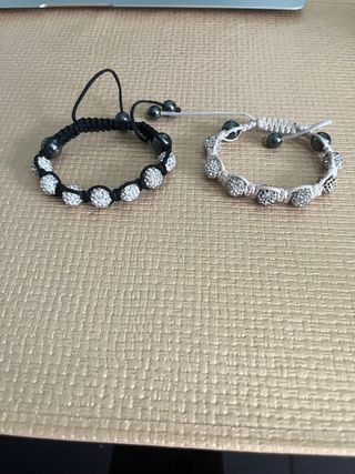 Conjunto de duas pulseiras, uma em preto e outra em branco.